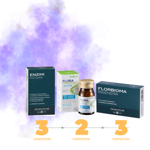 Visualizza tutti i dettagliL’offerta include 3 Florbioma Rigenera (24 compresse), 3 Enzimi No Gas (24 compresse) e 2 FloraBalance Active (20 capsule).Questo percorso completo...