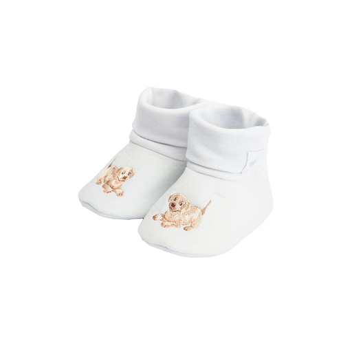 Visualizza tutti i dettagliDolcissime scarpine in cotone per neonato, impreziosite da un tenero cagnolino ricamato sulla parte superiore, ideali per i primi mesi di vita. Pen...